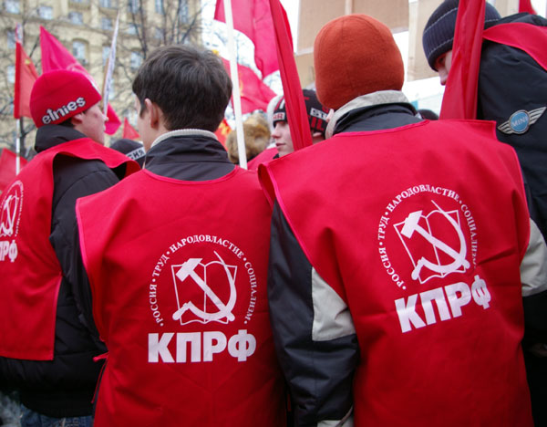 После Зюганова выступили руководители партийных ячеек КПРФ. С трибуны звучали лозунги: "Даешь народу право на жизнь", "Зюганова в тренеры".
